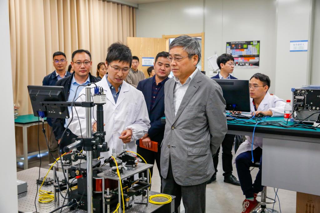 王文松副市长首先实地考察了合肥北航科学城创新研究院主楼项目建设现场,详细了解了研究院主楼功能布局规划和科学城发展与建设进展情况。随后赴研究院参观了微纳科学与技术研究中心、医工交叉创新研究中心、卫星导航与位置服务工程中心、智慧交通研究中心和跨尺度激光制造研究中心等5个中心的实验室。王文松副市长认真听取各中心关于团队建设、研究方向、平台搭建、项目进展以及产业化前景等情况的汇报后,表示当前研究院布局的学科和开展的研究与合肥产业经济发展非常契合,对研究院在较短时间内能够搭建高精尖实验平台,研发高水平实验系统表示赞赏,对研究院科研工作取得的阶段性成果给予肯定,并希望研究院要积极响应国家重大战略发展需求,进一步将北航学科优势与合肥地方产业经济发展优势相融合,加快推进科技成果转化。