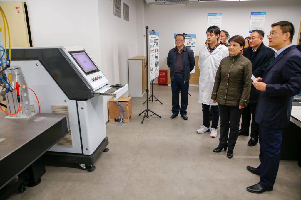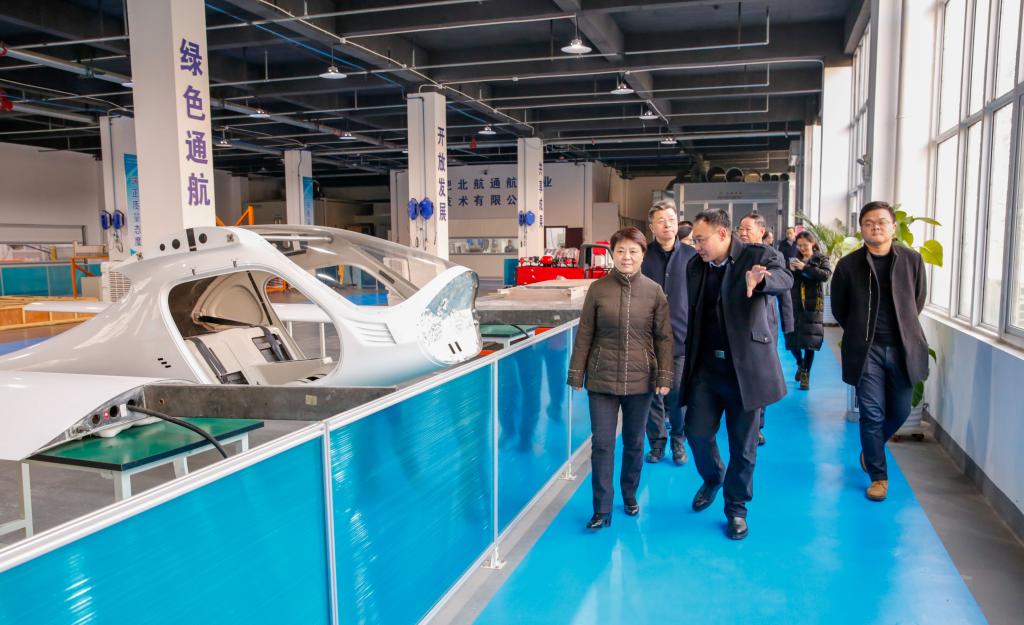 王翠凤副省长一行首先考察了北航合肥创新研究院主楼项目建设现场,了解了科学城一期工程建设进展情况,参观了“合肥一号”通航飞机产线与研究院微纳科学与技术研究中心、卫星导航与位置服务工程中心、天临空地一体化信息网络研究中心、智慧交通研究中心和跨尺度激光制造研究中心等5个中心实验室,详细听取了各单位关于团队建设、平台搭建、项目进展等情况的汇报。