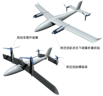 倾转机翼无人机吸采用电池带动螺旋桨作为动力,载荷能力8kg,最大飞行速度150 km/h,抗风能力5级,航程300km,续航时间4小时。倾转机翼原型实验平台样机从研制到定型经过了百余次飞行试验,飞行时长达数百小时。