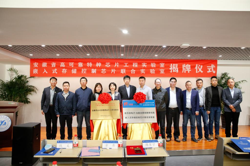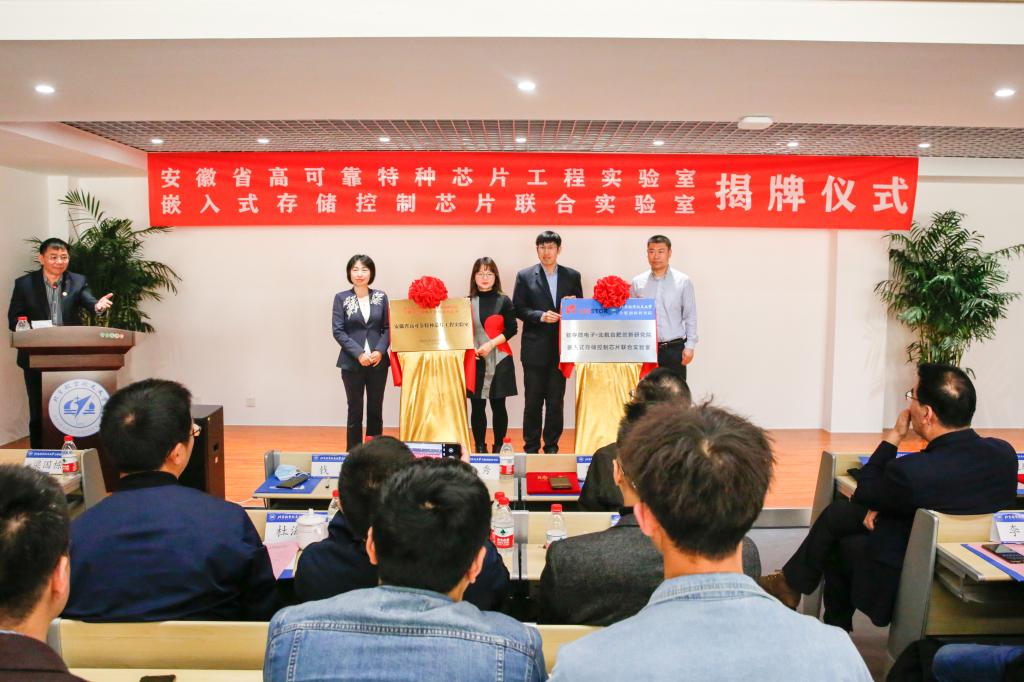 最后,方秀和钱文为“安徽省高可靠特种芯片工程实验室”揭牌,赵巍胜和吴大畏为“嵌入式存储控制芯片联合实验室”揭牌。