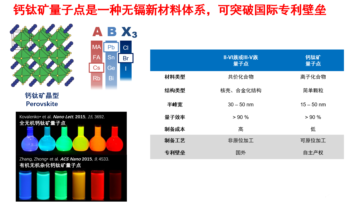 该项目实施主体为研究院量子点应用技术开发实验室。实验室成立于2020年初,致力于钙钛矿量子点图案化技术及其应用产品的开发。实验室主任钟海政教授带领的团队围绕液晶显示背光应用,开发了室温制备钙钛矿量子点的配体辅助再沉淀的技术路线,首次提出了钙钛矿量子点+KSF荧光粉实现广色域液晶显示背光的方案;发明了钙钛矿量子点的原位制备技术,并已导入量子点膜的批量生产应用。针对电致发光应用,发明了钙钛矿量子点片上原位制备技术,实现了红、绿、蓝三色电致发光原型器件。针对OLED/Micro-LED色转换应用需求,发明了钙钛矿量子点原位打印技术,实现了40-100微米像素尺寸的钙钛矿量子点原位制备。此次获批的科研项目面向Mini/Micro-LED等新型显示应用,开发基于钙钛矿量子点打印技术的色转换膜,实验室力争在3年内实现将相关技术进行产业化,进一步推动新型显示产业的发展。