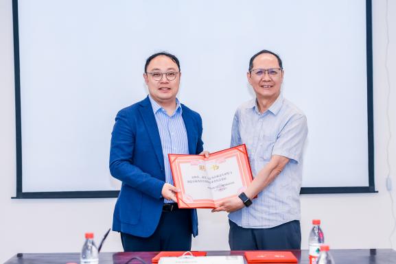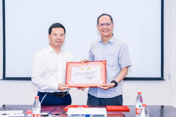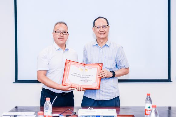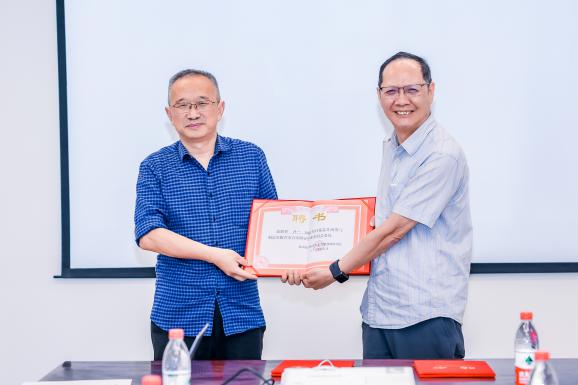 冯文全为学术委员会主任陈军宁颁发聘书,陈军宁为学术委员会委员赵巍胜、龙世兵、洪一、吴大畏、张悦颁发聘书。