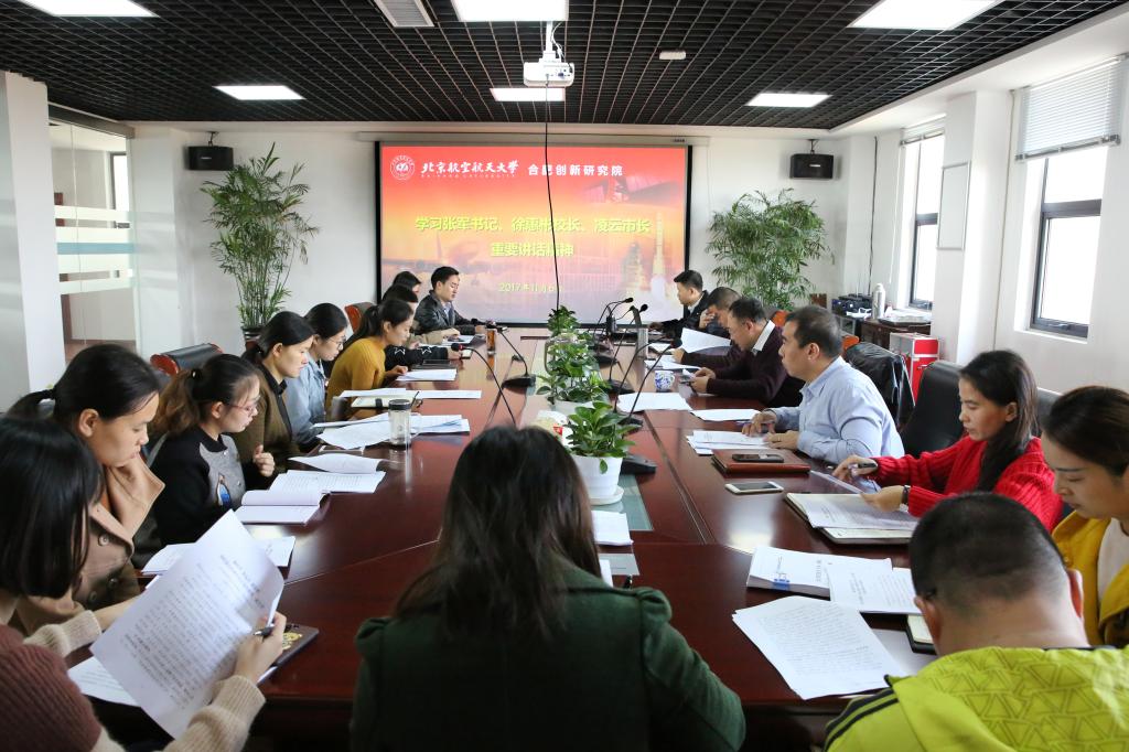 11月6日上午,北航合肥创新研究院组织全体员工认真学习了北航党委书记张军院士、校长徐惠彬院士在“学习贯彻十九大精神,加快推进‘双一流’建设动员部署会”上的重要讲话精神和合肥市委副书记、市长凌云调研北航合肥创新研究院主楼项目后的重要讲话精神。