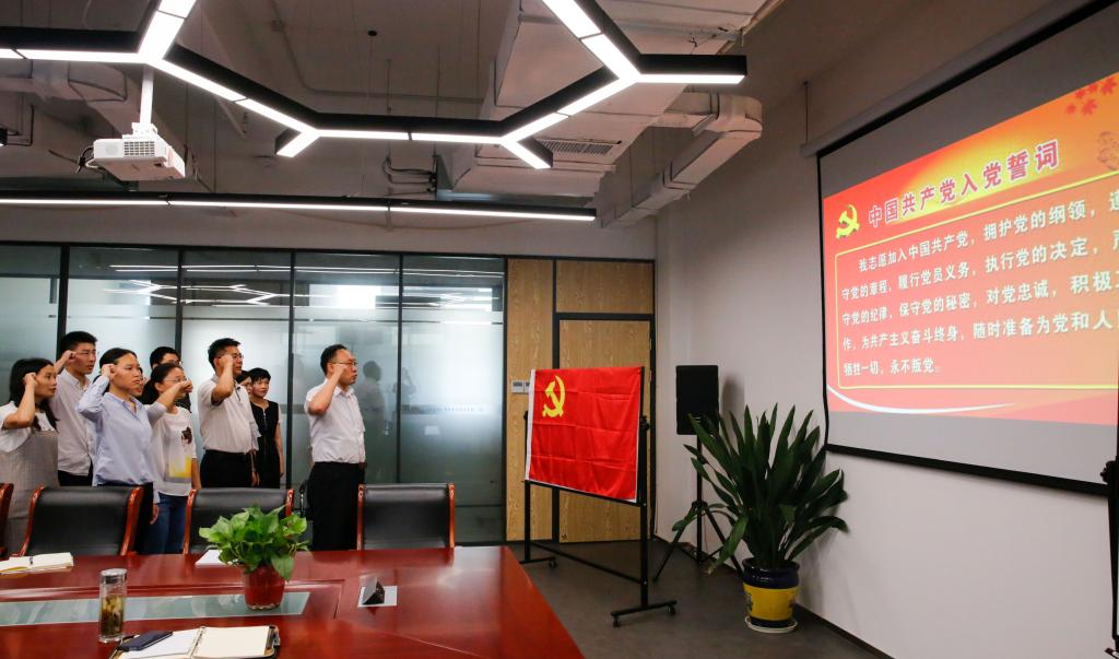为纪念中国共产党成立98周年,进一步强化支部党员党性意识,牢记共产党员的初心和使命,专题学习前,支部书记梁国栋带领支部党员重温了入党誓词。