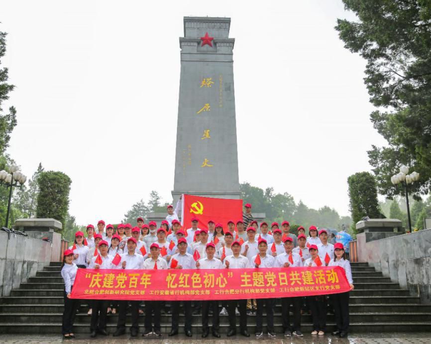 7月1日至2日,研究院党支部和工行安徽省行机构部党支部、工行合肥分行机构部党支部、工行合肥新站区支行党支部同赴革命老区金寨县,联合开展“庆建党百年 忆红色初心”主题党日活动。
