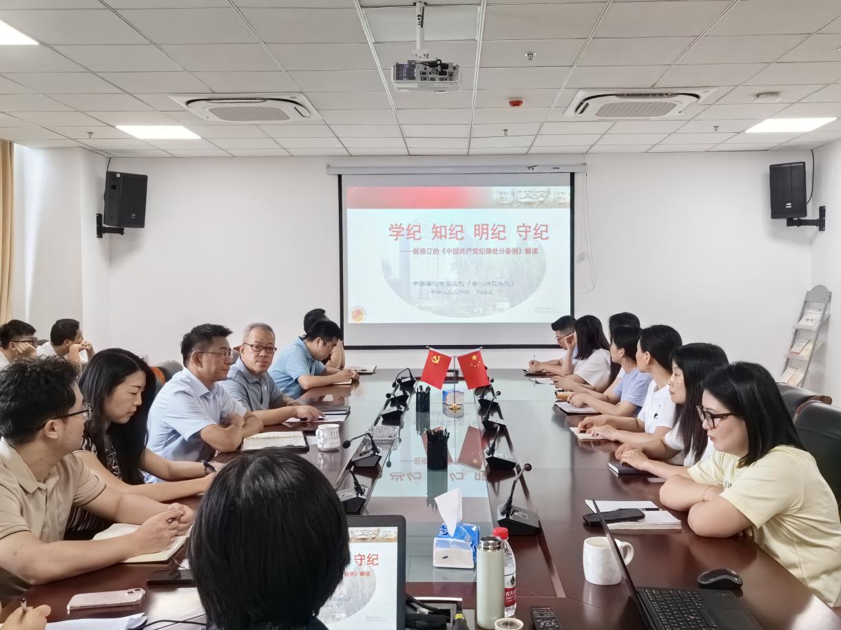 7月9日上午,研究院党支部邀请中共安徽省委党校(安徽行政学院)中共党史教研部主任、教授刘红运作专题党课。刘红运教授以“学纪 知纪 明纪 守纪——新修订的《中国共产党纪律处分条例》解读”为题,援引大量典型案例,辅以丰富图片、视频资料,从深刻认识修订《中国共产党纪律处分条例》的重要意义、准确把握《中国共产党纪律处分条例》修订的主要内容、抓好《中国共产党纪律处分条例》的贯彻执行等三个方面深入浅出地解读了新修订的《中国共产党纪律处分条例》。党课主题鲜明、形象生动、内容丰富,有效帮助党员干部更好地理解党的六大纪律。